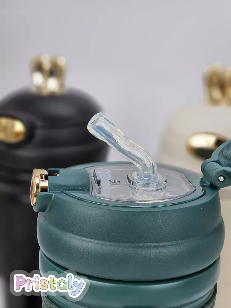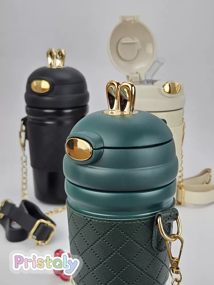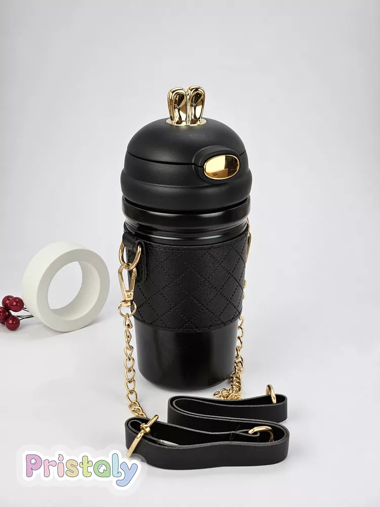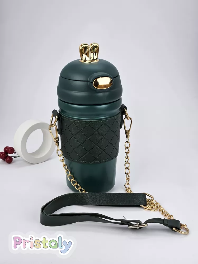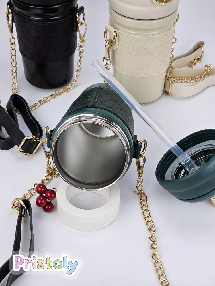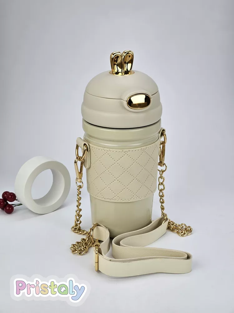 تراول ماگ لاکچری فلزی شیک، نی دار و بند بلند